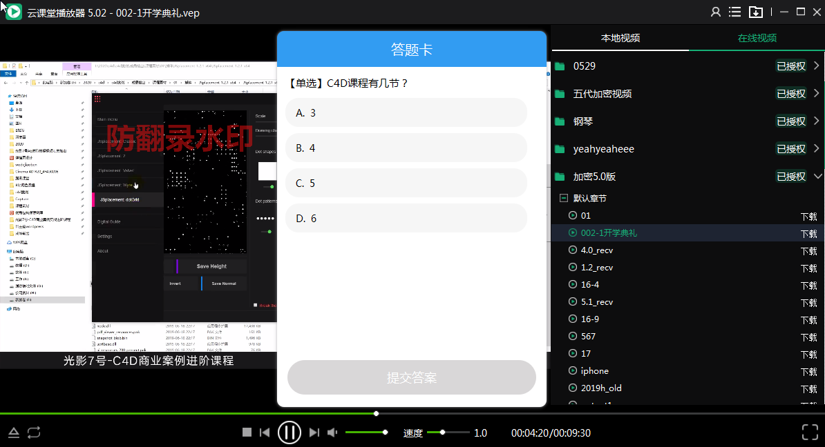 4、點擊“添加問答”,輸入防翻錄問答問題,如“C4D課程有幾節?”,點擊“確定”。